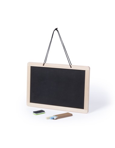 Pizarra para colgar de doble cara personalizada con grabado laser. Tradicional pizarra de tiza en una cara con 3 tizas incluidas + pizarra para rotulador en la otra cara -rotulador incluido-. Con borrador de doble cara para tiza o rotulador.